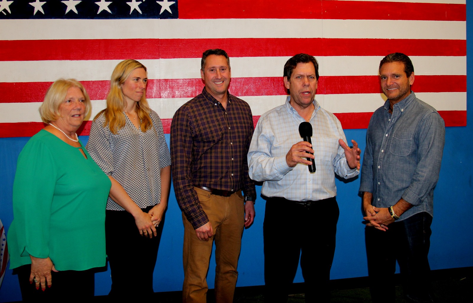 L-R; Donna Schepiga, Margie Donlon, David Fisher, Christopher Siciliano and John Napolitani after the polls closed on May 14