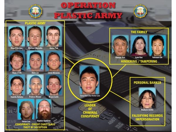 Sixteen people were arrested during “Operation Plastic Army,” a investigation that extended from November, 2017 through Janurary 2019, including Barbara Cirillo, an employee at a Colts Neck bank who was charged with opening fraudulent bank accounts for the scheme, according to the announcement.