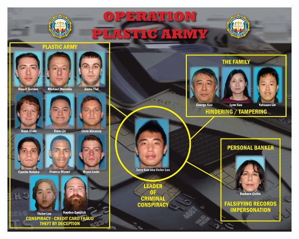 Sixteen people were arrested during “Operation Plastic Army,” a investigation that extended from November, 2017 through Janurary 2019, including Barbara Cirillo, an employee at a Colts Neck bank who was charged with opening fraudulent bank accounts for the scheme, according to the announcement.
