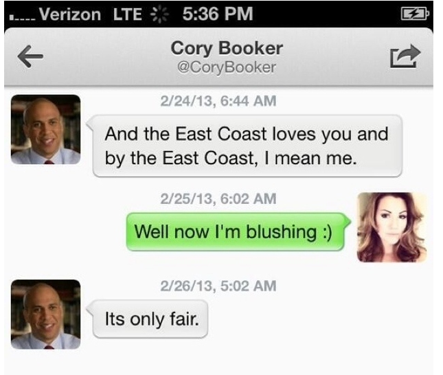 Booker follows @LysnieLee on twitter. They share public and private messages in the wee hours of the morning. BuzzFeed says their cyber relationship started because they were both in a film about twitter, #ffthefilm.