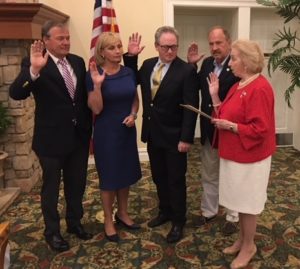 Robert A. Honecker Jr, Kim Guadagno, Benjamin Lucarelli and Manasquan Mayor Ed Donovan take the Oath of Office issued by M. Claire French