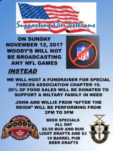 - Veterans Fundraiser at Woody’s Roadside (Farmingdale)-MORE INFO