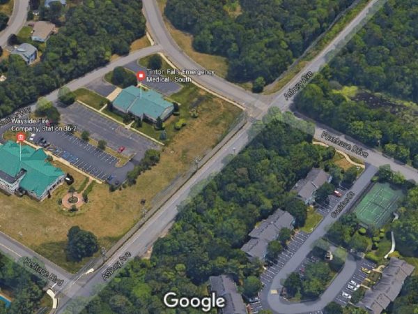 The intersection provides access to the Fox Chase development, the Wayside Fire Company and the Tinton Falls Emergency Medical Serviced-South facility.