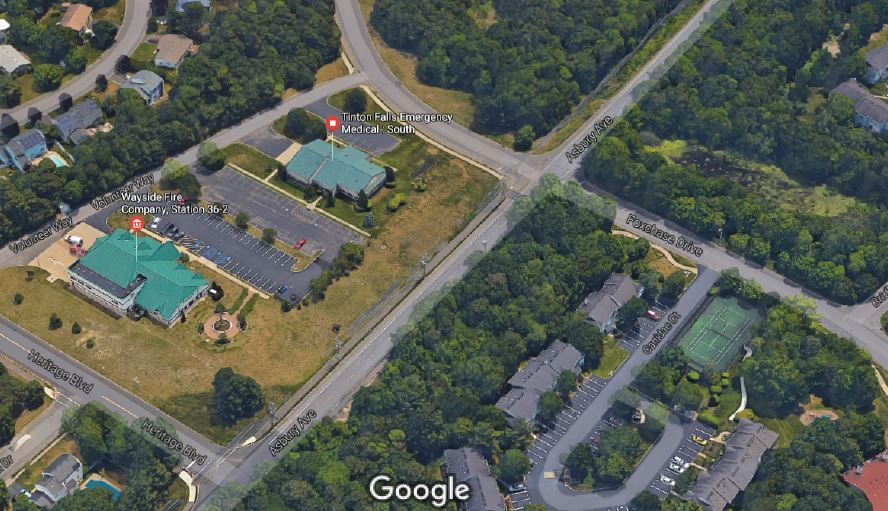 The intersection provides access to the Fox Chase development, the Wayside Fire Company and the Tinton Falls Emergency Medical Serviced-South facility.
