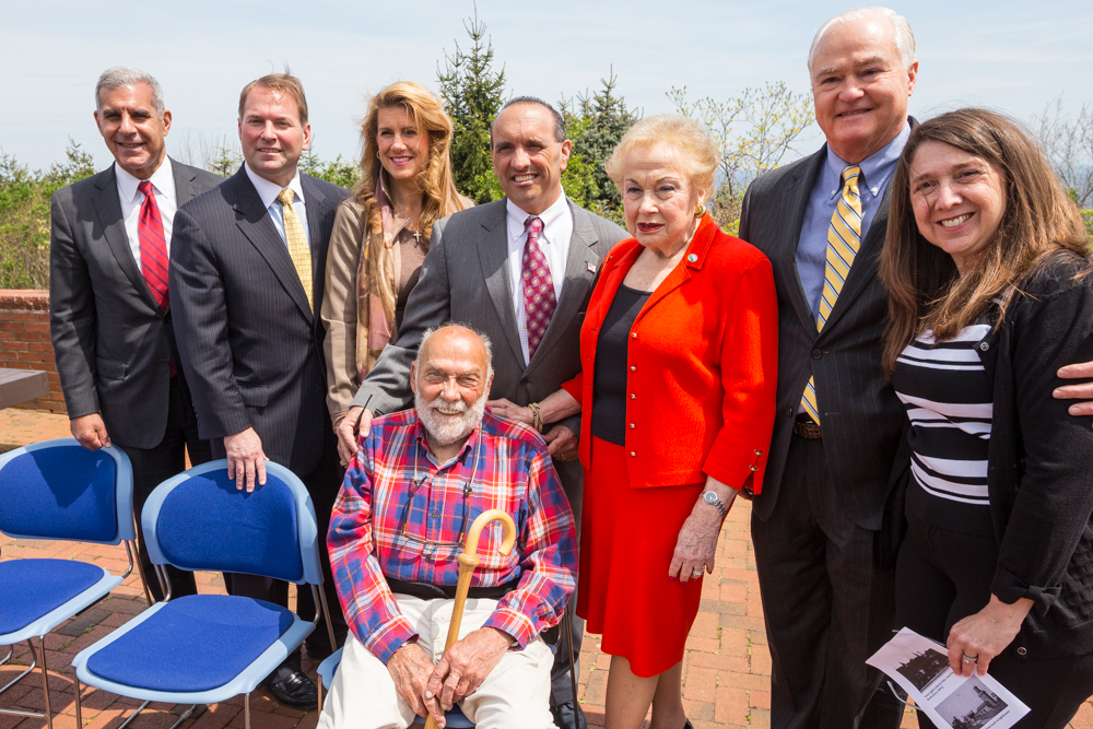 Senator Joseph Kyrillos, Sheriff Shaun Golden, Freeholders Serena DeMaso, Director Tom Arnone, Lillian Burry and John Curley and Highlands Business Partnership President Carla Braswell at the Twin Lights reopening with World War II and Korean War veteran Dick Seuffert of Middletown. Photo by Ken Braswell, ShoreGrafx.