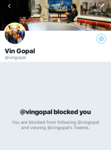 State Senator and honorary volunteer firefighter Vin Gopal has MMM’s Art Gallagher blocked on twitter and facebook, but not on instagram.