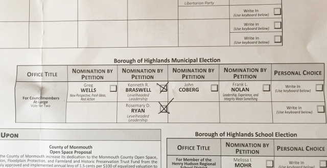 On Tuesday November 7, I will enthusiastically cast my vote for Highlands Borough Council for Ken Braswell and Rosemary Ryan. If you live in Highlands, I hope you do too.